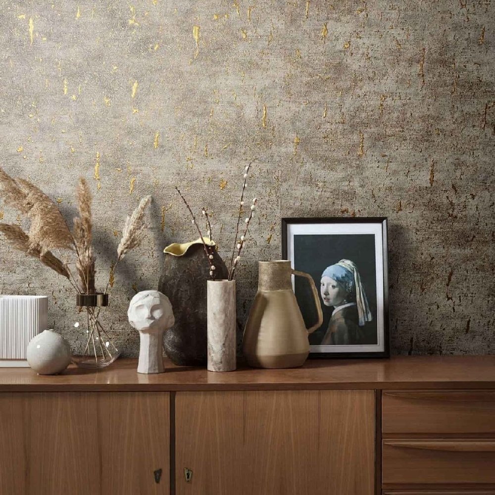 Non-Woven mottles structural wallpaper Greige Metallic