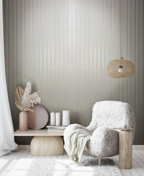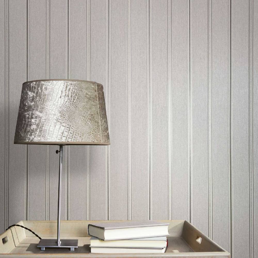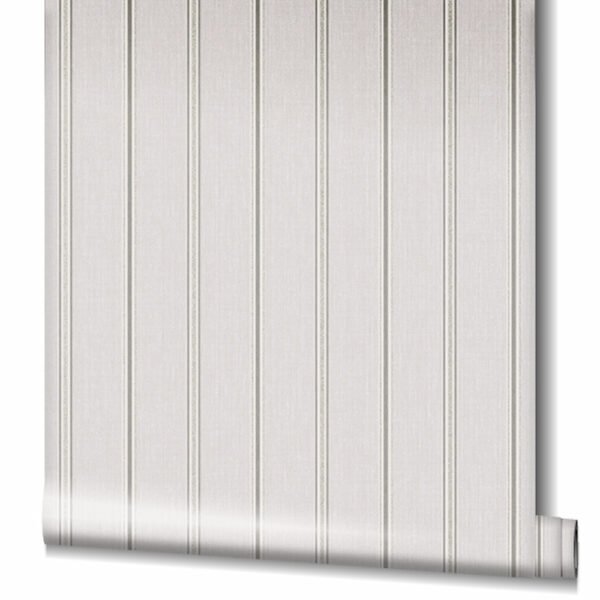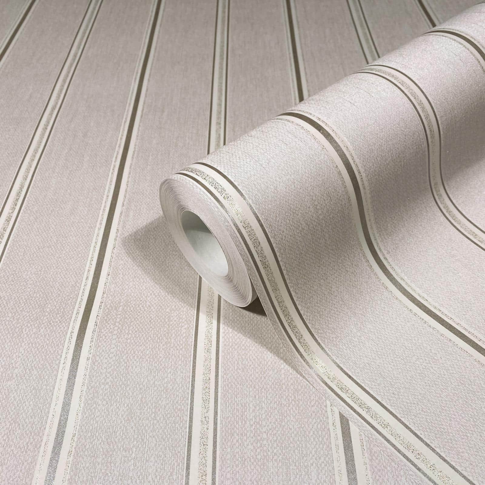 With this non-woven wallpaper from the Villa Romana collection, it’s easy to let the flair of the luxurious villas of Rome move in with you. You can give every room an elegant and noble look thanks to the great textile feel and metallic effects. The wallpaper 31580 features a striped pattern with a metallic effect in silver and glitter gold on a linen look background in shades of grey and beige. Discover the entire collection in our shop!