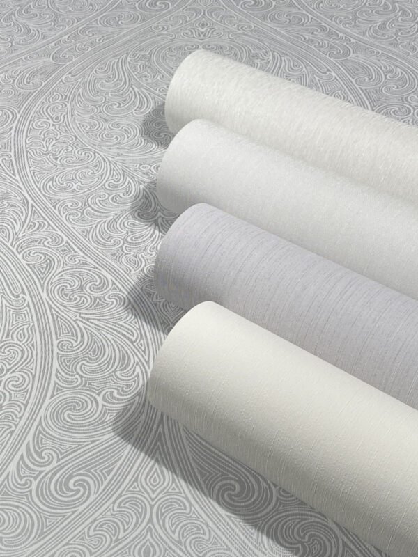 With this non-woven wallpaper from the Villa Romana collection, it’s easy to let the flair of the luxurious villas of Rome move in with you. You can give every room an elegant and noble look thanks to the great textile feel and metallic effects. The wallpaper 32980 features an elegant all-over ornamental pattern with flourishes in shades of grey on a background in shades of grey with a metallic effect and silver glitter. Discover the entire collection in our shop!