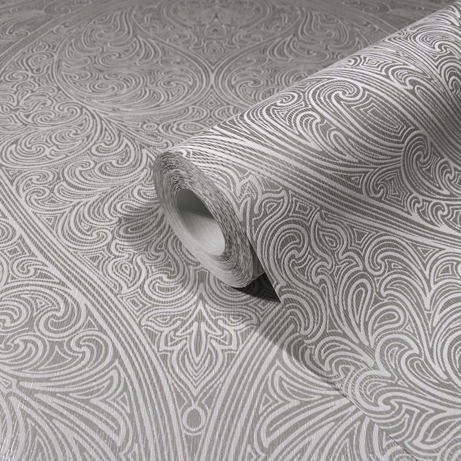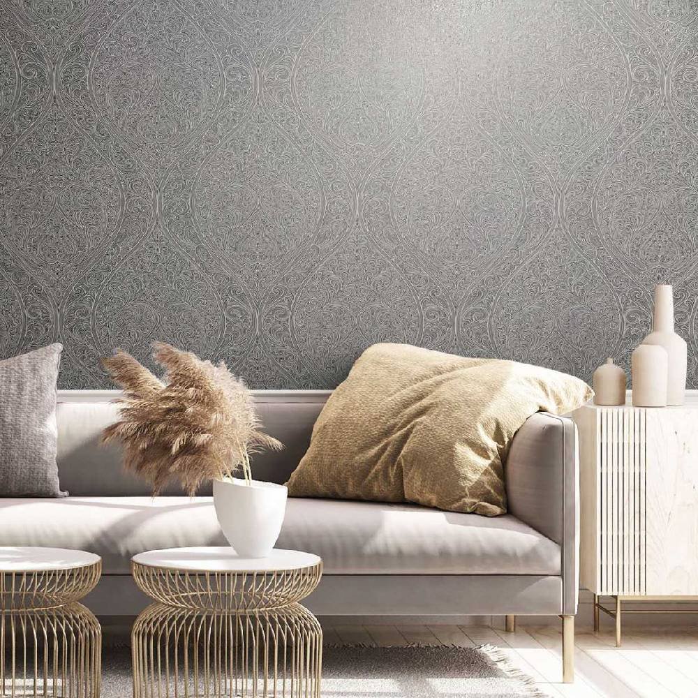 With this non-woven wallpaper from the Villa Romana collection, it’s easy to let the flair of the luxurious villas of Rome move in with you. You can give every room an elegant and noble look thanks to the great textile feel and metallic effects. The wallpaper 32980 features an elegant all-over ornamental pattern with flourishes in shades of grey on a background in shades of grey with a metallic effect and silver glitter. Discover the entire collection in our shop!