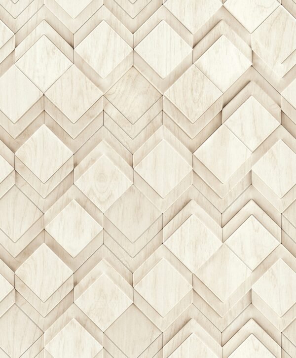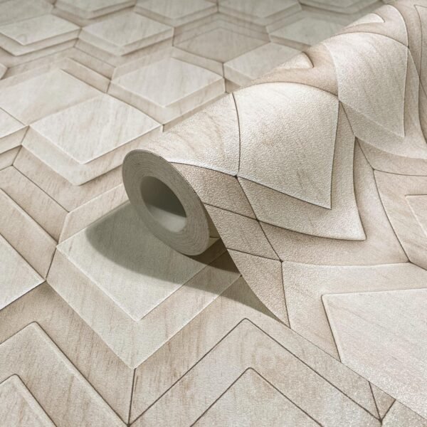With this wallpaper from the Leyla collection by Novamur, you can easily add elegant accents to your home. The wallpaper combines high-quality materials with a modern and stylish character to give your rooms a harmonious atmosphere. The non-woven wallpaper 81678 features a graphic diamond pattern with a 3D effect in a wood look in cream and beige tones. Discover the other wallpapers from this collection in our shop.