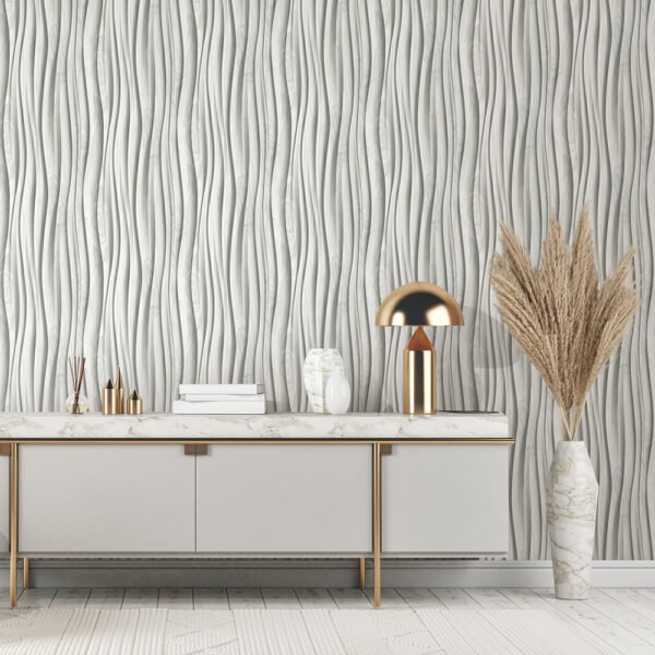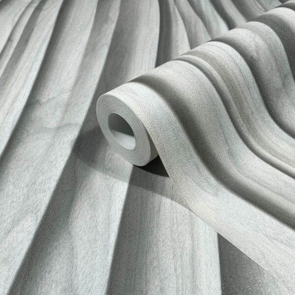 With this wallpaper from the Leyla collection by Novamur, you can easily add elegant accents to your home. The wallpaper combines high-quality materials with a modern and stylish character to give your rooms a harmonious atmosphere. The non-woven wallpaper 81669 features a wave pattern with a 3D effect in a wood look in cream and grey tones. Discover the other wallpapers from this collection in our shop.
