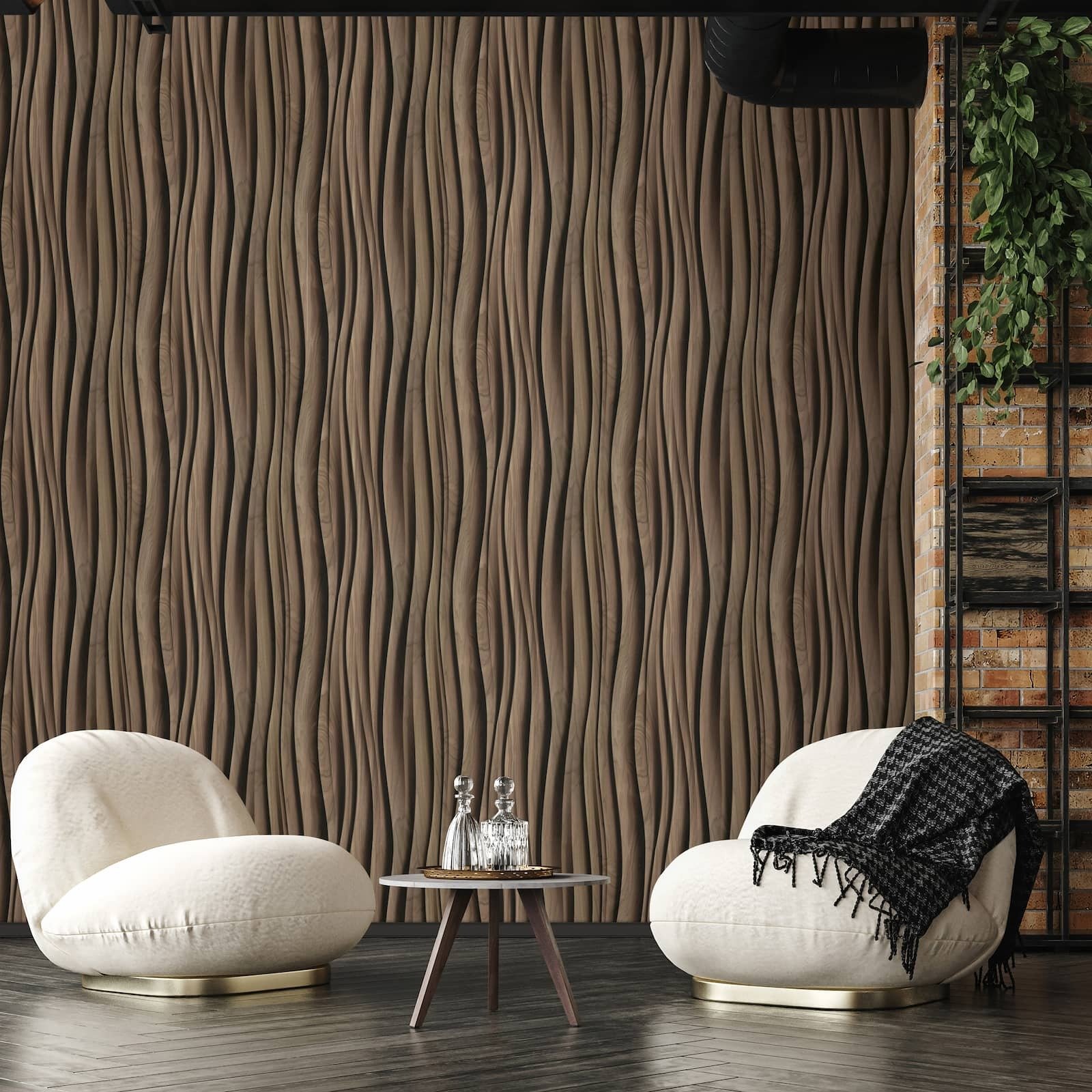 With this wallpaper from the Leyla collection by Novamur, you can easily add elegant accents to your home. The wallpaper combines high-quality materials with a modern and stylish character to give your rooms a harmonious atmosphere. The non-woven wallpaper 81668 features a wave pattern with a 3D effect in a wood look in brown tones. Discover the other wallpapers from this collection in our shop.