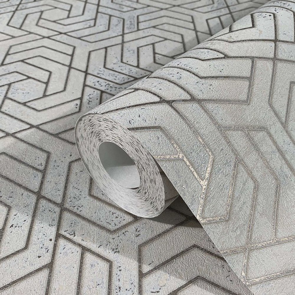 Wallpaper Non-Woven 3D Labyrinth Grafik metallic greige gold Marburg City Glam 32608