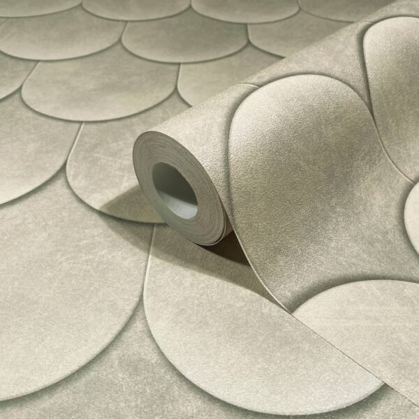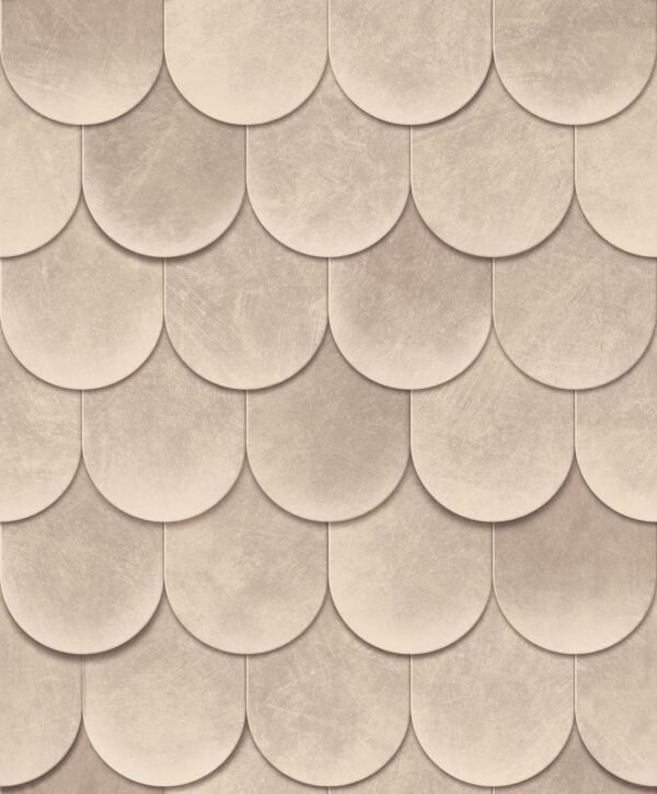 This wallpaper from the Leyla collection by Novamur combines urban chic and Mediterranean lightness and conjures up works of art on your walls. With the wallpaper you can easily bring the lifestyle of Santorini or Miami straight into your home. The non-woven wallpaper 81659 shows a graphic motif with tiles that are reminiscent of roof shingles, with a 3D effect in beige and grey tones. Also discover the other wallpapers in this collection in our shop.