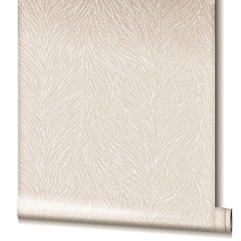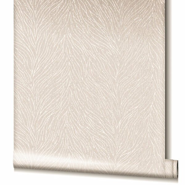 With this non-woven wallpaper from the Villa Romana collection, it’s easy to let the flair of the luxurious villas of Rome move in with you. You can give every room an elegant and noble look thanks to the great textile feel and metallic effects. The wallpaper 58426 shows a leaf pattern with a line structure with a metallic effect in pearl on a textile-look background in beige tones. Discover the entire collection in our shop!