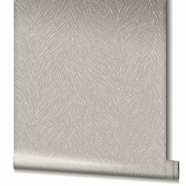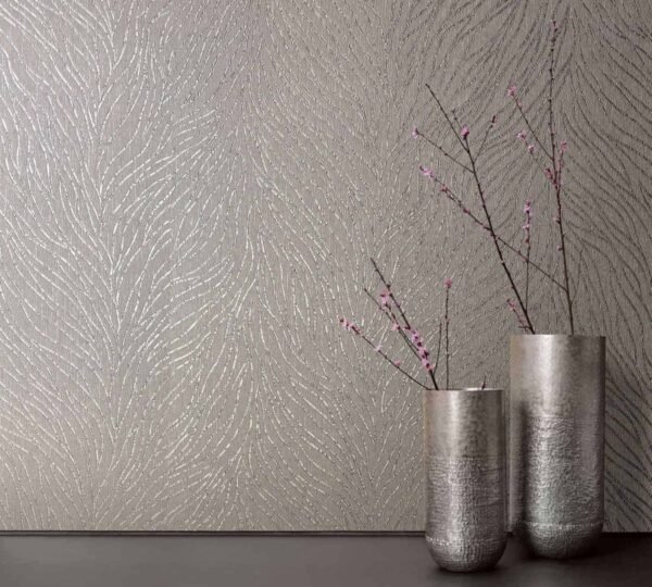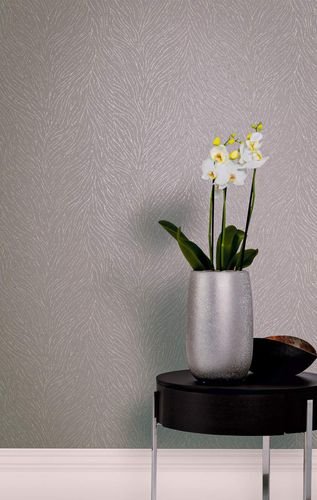 With this non-woven wallpaper from the Villa Romana collection, it’s easy to let the flair of the luxurious villas of Rome move in with you. You can give every room an elegant and noble look thanks to the great textile feel and metallic effects. The wallpaper 58428 shows a leaf pattern with a line structure with a metallic effect in silver on a textile-look background in grey and beige tones. Discover the entire collection in our shop!