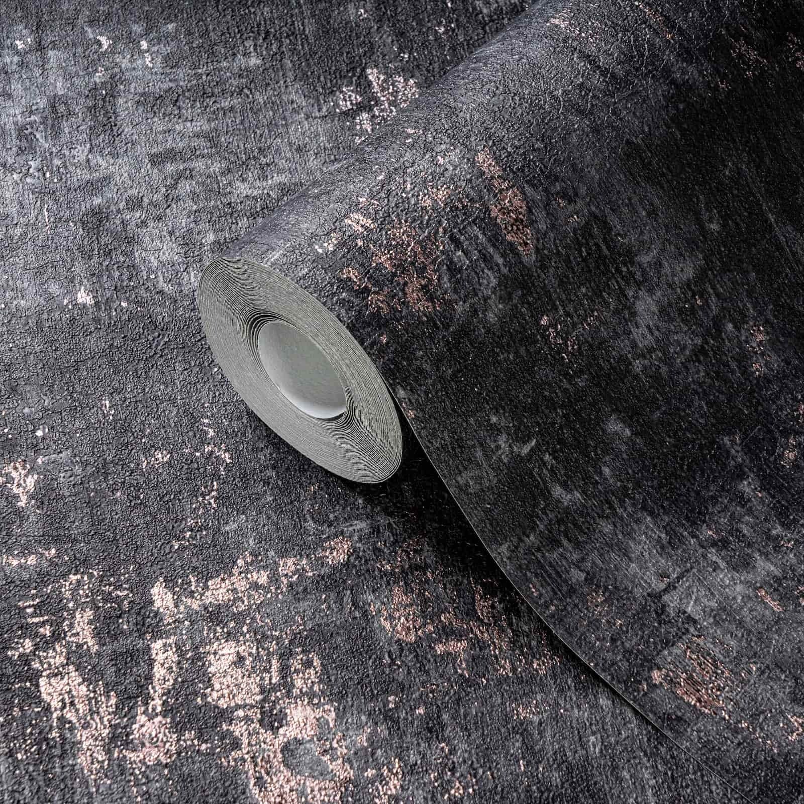 This wallpaper from the Stories of Life collection by livingwalls gives your four walls a stylish and modern ambience. The wallpaper is perfect for creative wall design if you want to give your rooms an individual touch. The non-woven wallpaper 39670-3 has a plaster look with a shabby-style texture in black with a metallic effect in copper. Also discover the other wallpapers in this collection in our shop.
