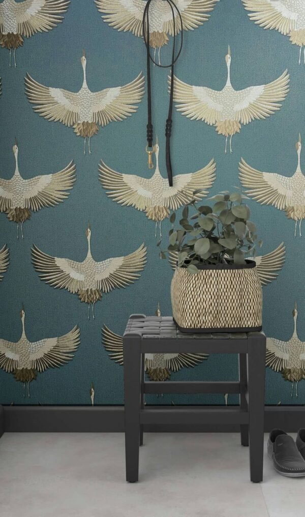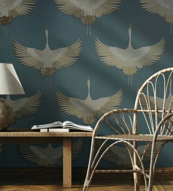 You can bring Nordic cosiness and Japanese clarity home with this non-woven wallpaper from the Kumano collection by Marburg. The wallpaper is in the trendy Japandi style, which combines the Japanese and Nordic styles and thus creates a pleasant atmosphere. Wallpaper 34531 features cranes on a linen look background that appear to have been embroidered in shades of blue with a copper metallic effect. Convince yourself of the other wallpapers in this collection in our shop.