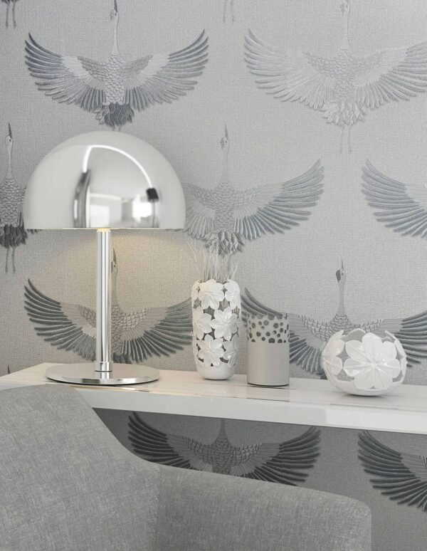 You can bring Nordic cosiness and Japanese clarity into your home with this non-woven wallpaper from the Kumano collection by Marburg. The wallpaper is in the trendy Japandi style, which combines the Japanese and Nordic styles and thus creates a pleasant atmosphere. Wallpaper 34530 features cranes on a linen look background that appear to have been embroidered in shades of grey with a silver metallic effect. Convince yourself of the other wallpapers in this collection in our shop.