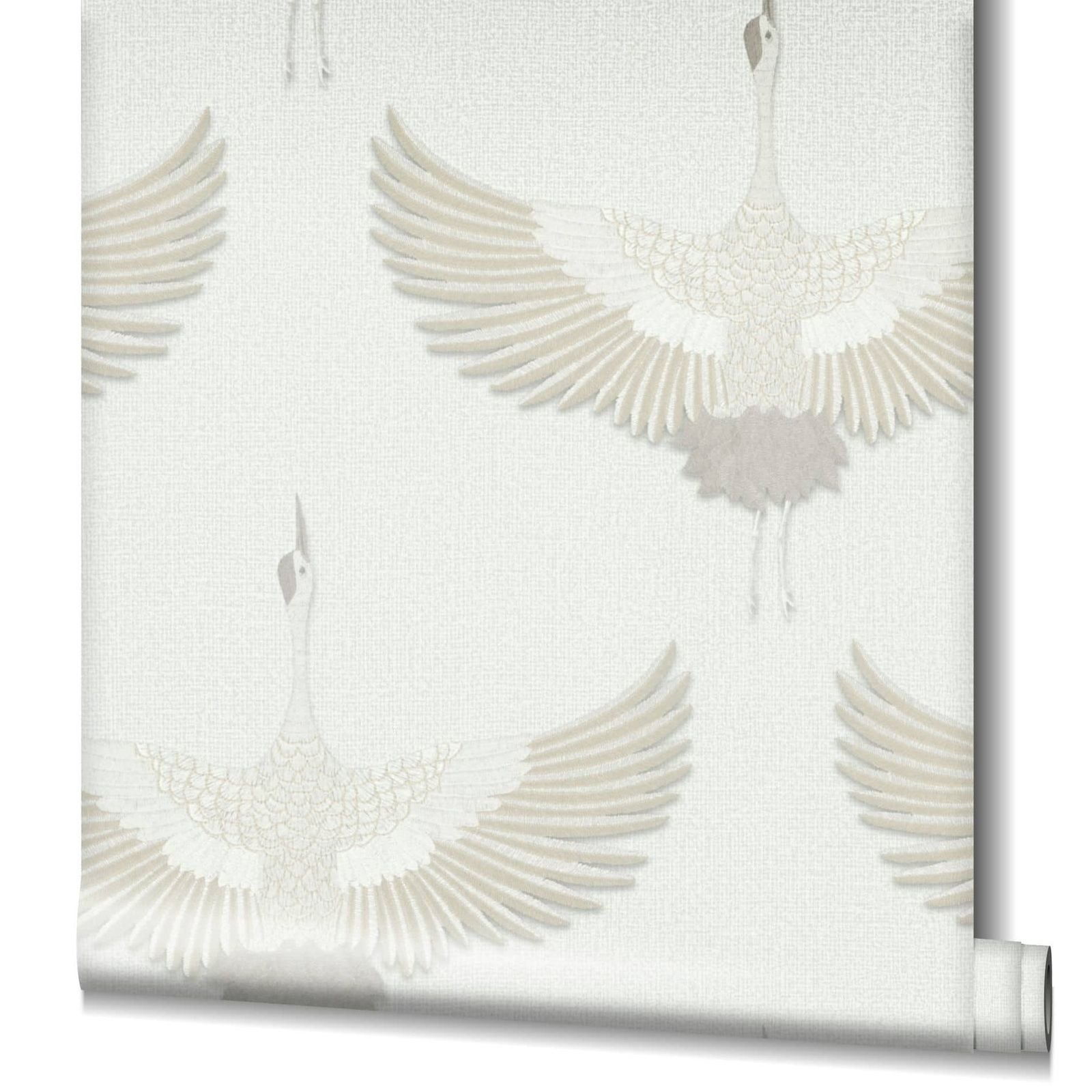 You can bring Nordic cosiness and Japanese clarity into your home with this non-woven wallpaper from the Kumano collection by Marburg. The wallpaper is in the trendy Japandi style, which combines the Japanese and Nordic styles and thus creates a pleasant atmosphere. Wallpaper 34529 features cranes on a linen look background that appear to have been embroidered in white and beige tones with a metallic effect. Convince yourself of the other wallpapers in this collection in our shop.