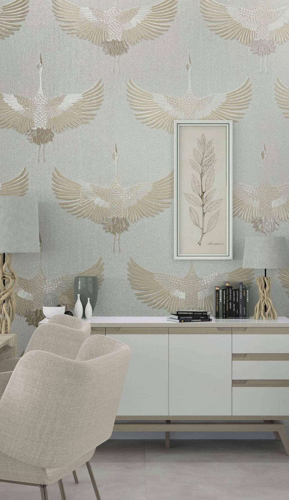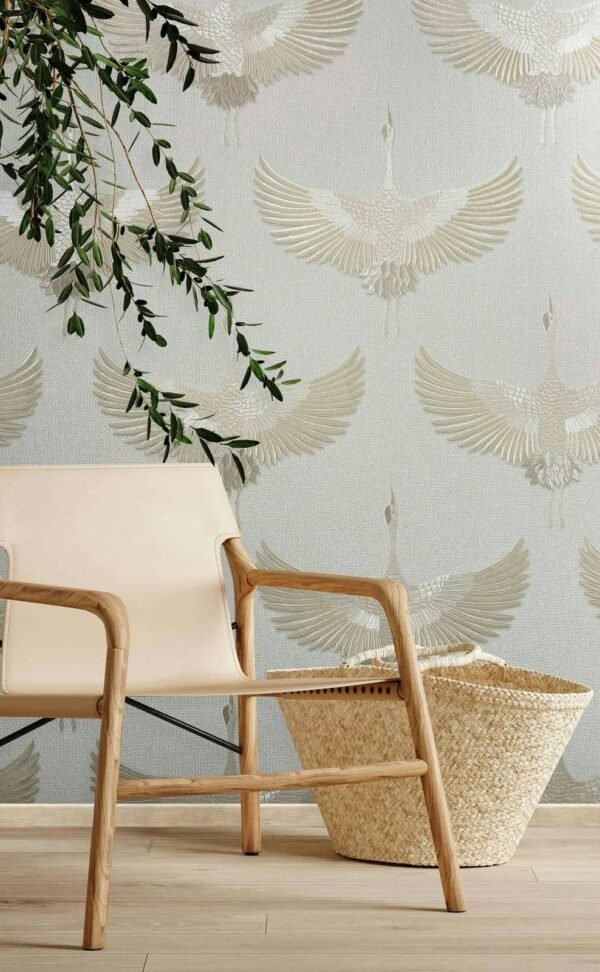Non-woven wallpaper 34529 from the Kumano collection by Marburg with cranes