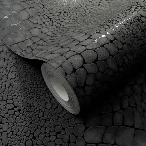 Non-woven wallpaper crocodile grey black gloss 10529-15