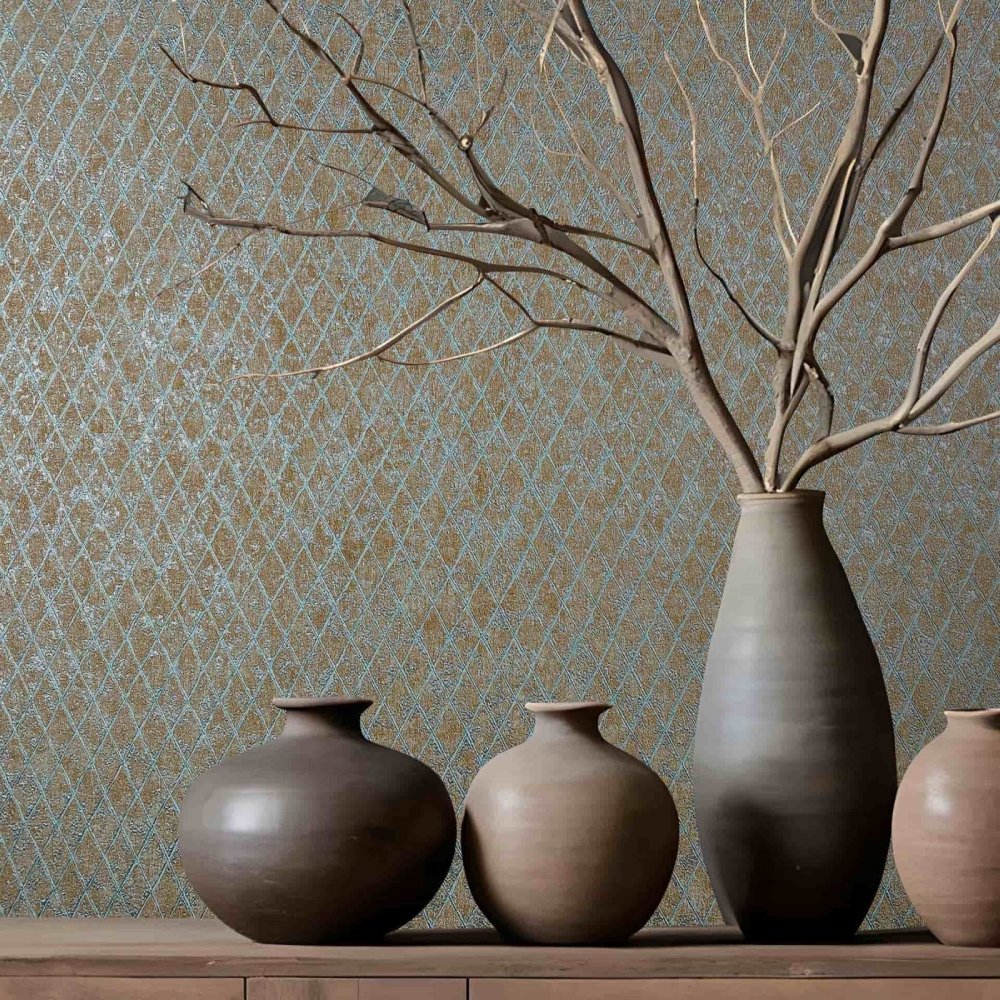 Long, bright nights of Nordic summer festivals and festive rituals are the inspiration for this wallpaper from the Ritus von Marburg collection. It creates a mystical atmosphere and brings the mysterious beauty of nature into your home. The non-woven wallpaper 35539 shows a graphic pattern with diamonds in a used look in brown and blue tones with a metallic effect. Also discover the other wallpapers in this collection in our shop.