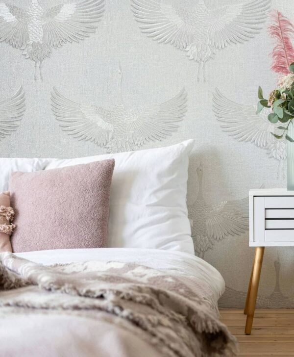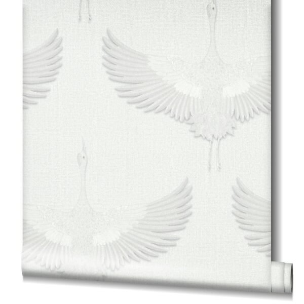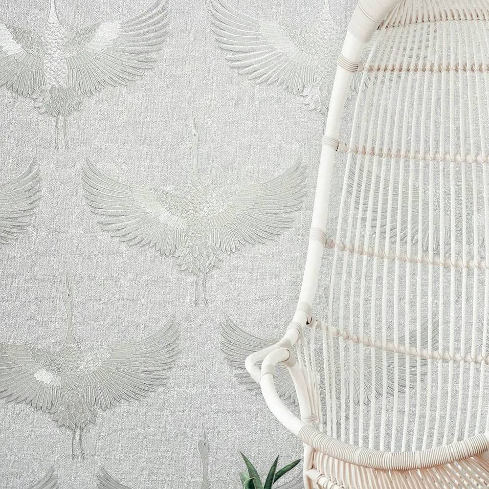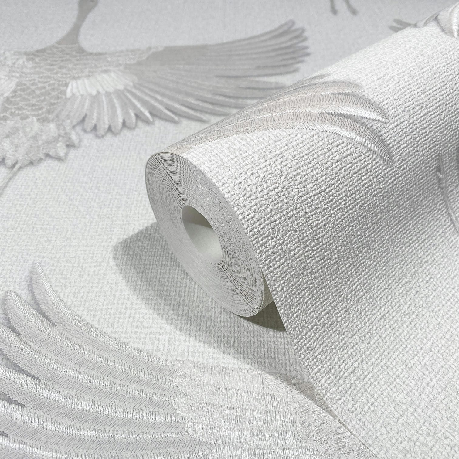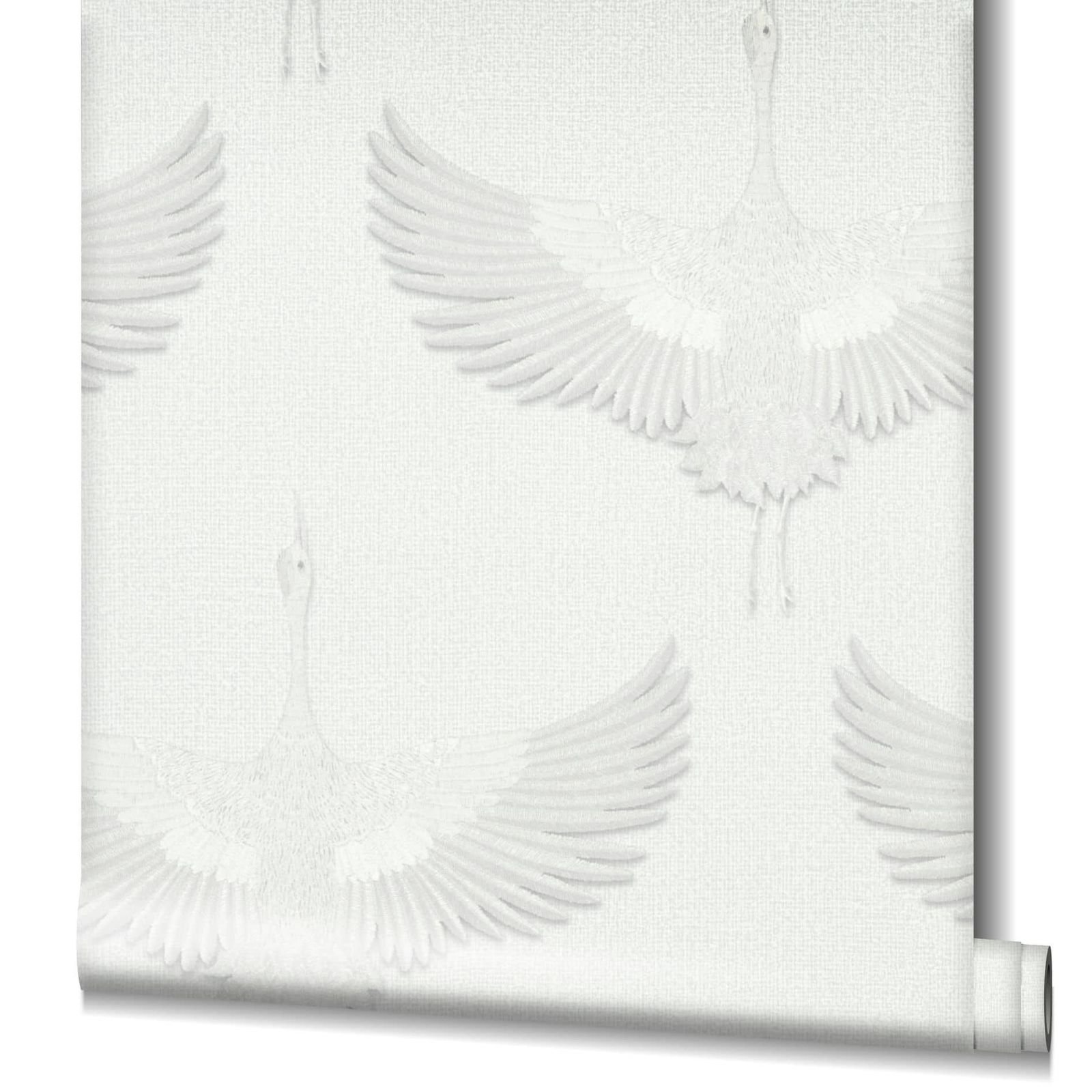 You can bring Nordic cosiness and Japanese clarity into your home with this non-woven wallpaper from the Kumano collection by Marburg. The wallpaper is in the trendy Japandi style, which combines the Japanese and Nordic styles and thus creates a pleasant atmosphere. Wallpaper 34528 features cranes on a linen look background that appear to have been embroidered in white with a metallic effect. Convince yourself of the other wallpapers in this collection in our shop.