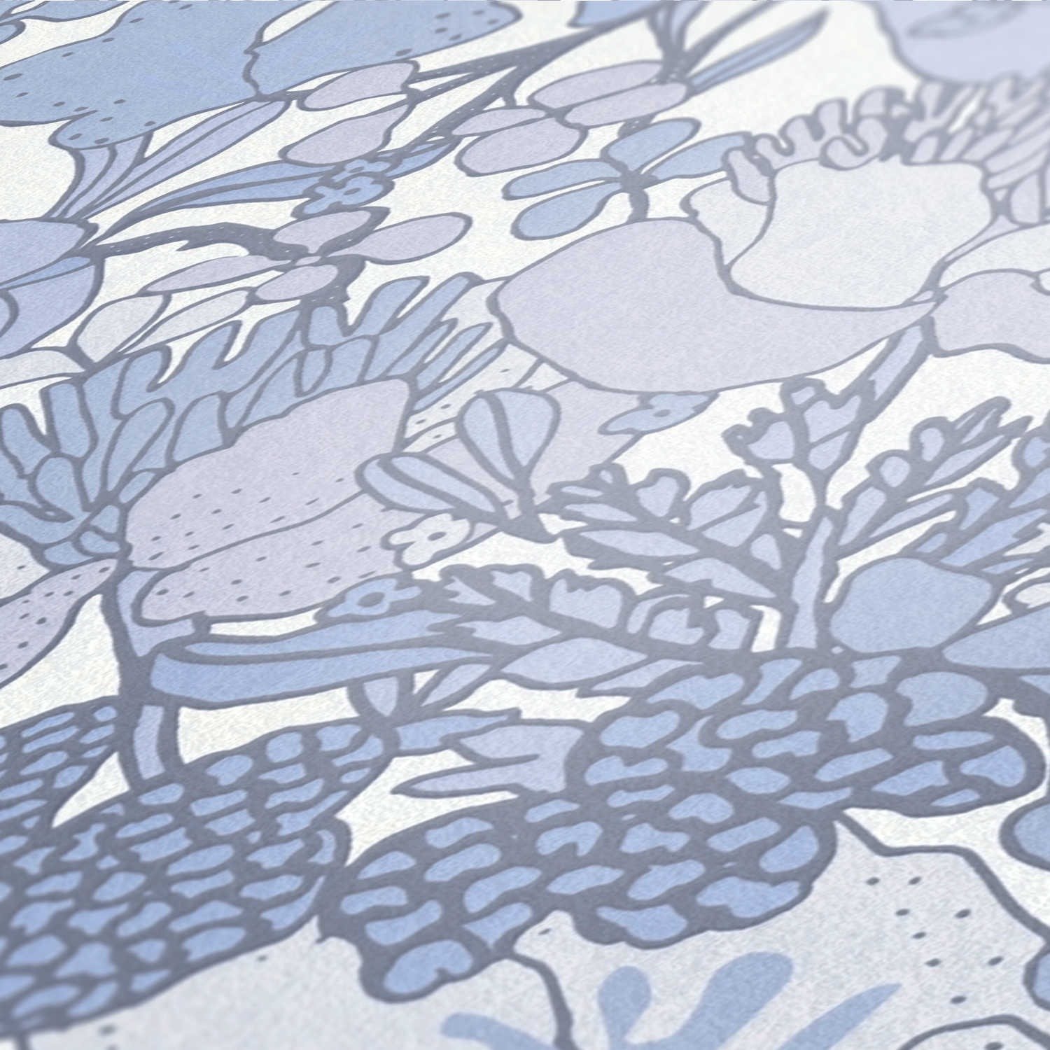 Non-Woven Wallpaper Floral Blossoms white blue 37756-6