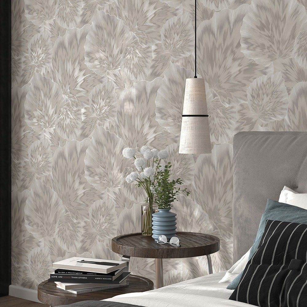This elegant wallpaper from Erismann from the Spotlight 2 collection is like haute couture for your walls. Every room becomes a center of glitz and glamor, filling your everyday life with the splendor and excitement of a gala night. The non-woven wallpaper 10402-37 shows a pattern with abstract leaves that look as if they were marbled in brown and grey tones with a metallic effect. Also discover the other luxurious wallpapers in this collection in our shop.