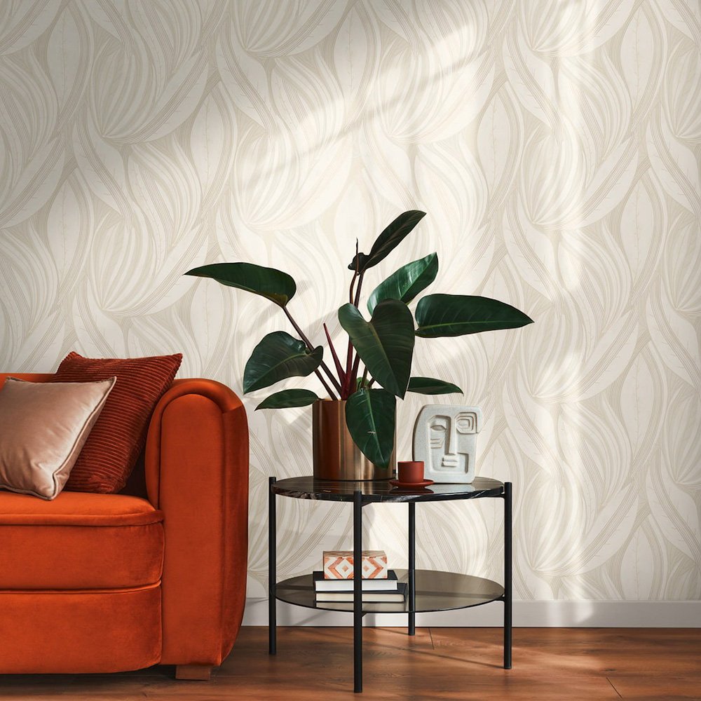 You can easily bring the urban flair of pulsating metropolises into your home with this wallpaper from the Metropolitan Stories – Hot Spots collection. It exudes a touch of magic that creates a new world in your home and makes you think of vacation. The non-woven wallpaper 78655-4 shows a graphically depicted leaf pattern in cream and beige tones with a subtle metallic effect. Also discover the other wallpapers in this collection in our shop.
