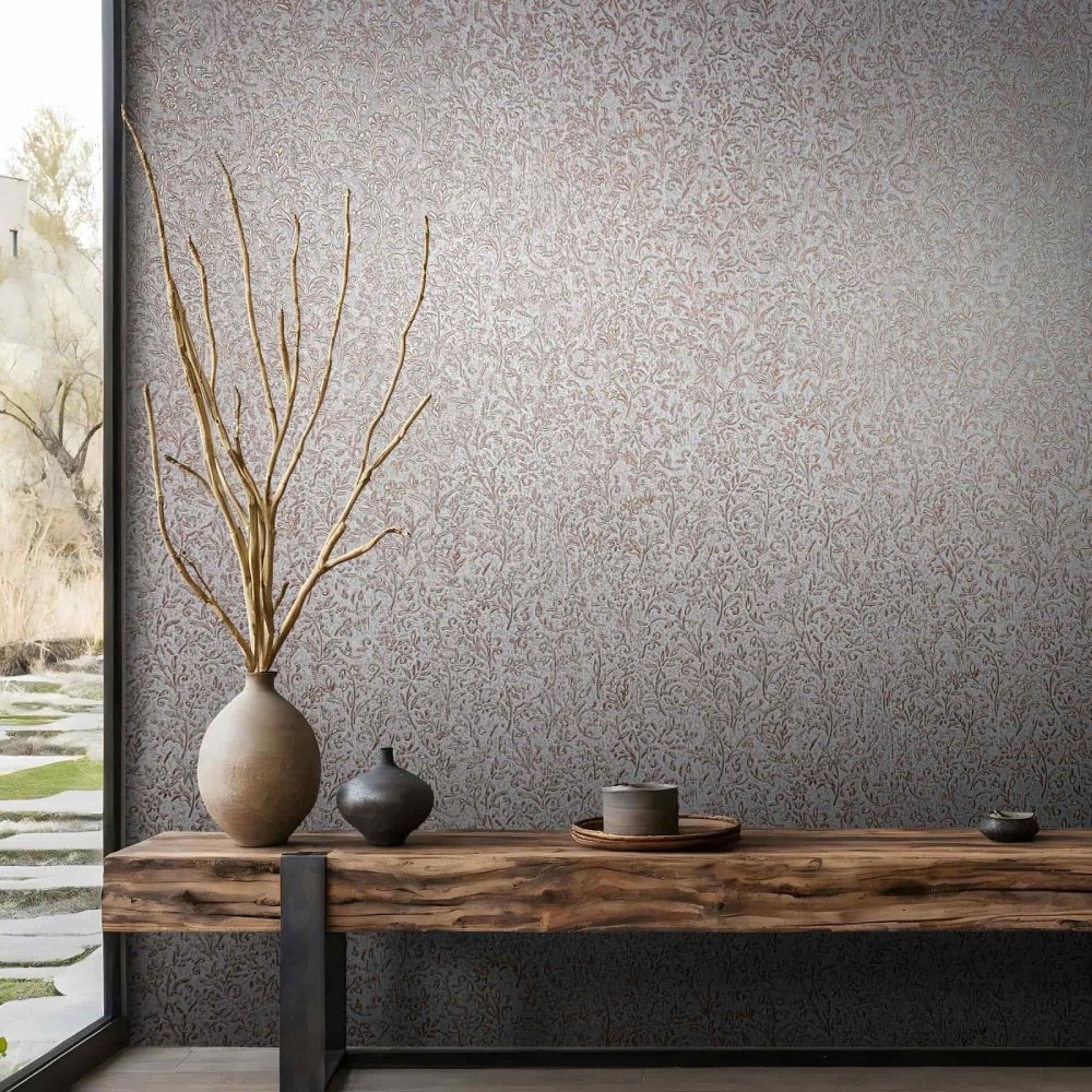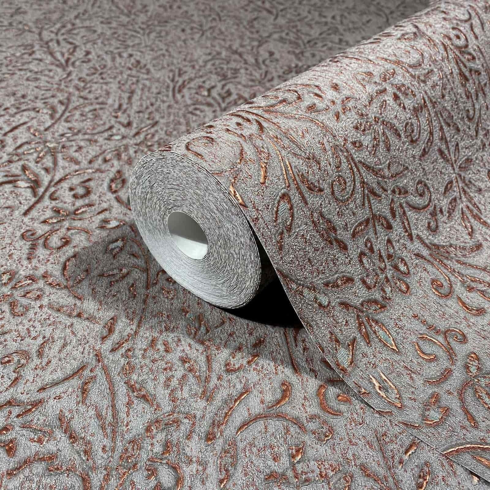 Long, bright nights of Nordic summer festivals and festive rituals are the inspiration for this wallpaper from the Ritus von Marburg collection. It creates a mystical atmosphere and brings the mysterious beauty of nature into your home. The non-woven wallpaper 35534 shows a floral motif with flowers and leaves in a concrete look in grey tones with a metallic effect in copper. Also discover the other wallpapers in this collection in our shop.