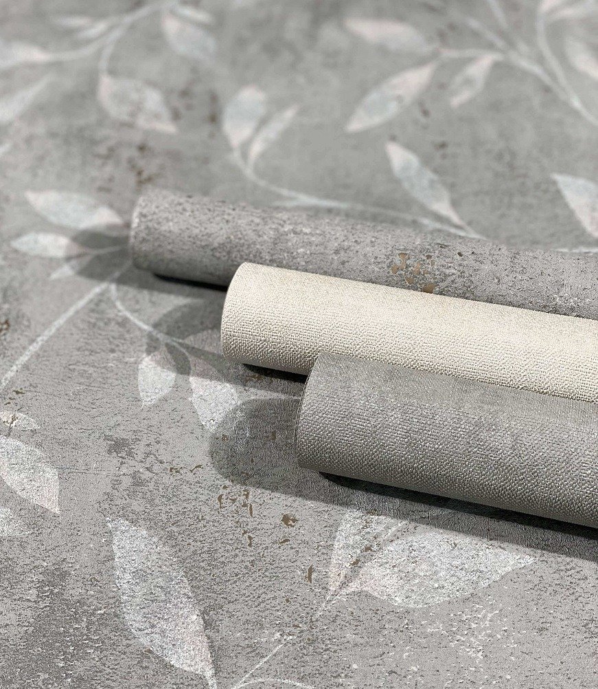 Glamorous metallic effects are combined with concrete and graphic designs from the industrial look in the non-woven wallpaper collection “City Glam” from Marburg. So this collection is an allrouder, which also combines baroque ornaments with a plasters look, which creates a great overall picture on the wall. The wallpaper 32634 in leaves design in grey, gold with metallic effect sets cosy accents and invites to stay.