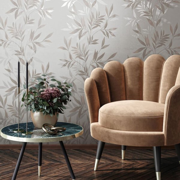 With this wallpaper from the Leyla collection by Novamur, you can easily add elegant accents to your home. The wallpaper combines high-quality materials with a modern and stylish character to give your rooms a harmonious atmosphere. The non-woven wallpaper 82459 features a leaf pattern with tendrils in white and beige tones with a metallic silver effect. Discover the other wallpapers from this collection in our shop.