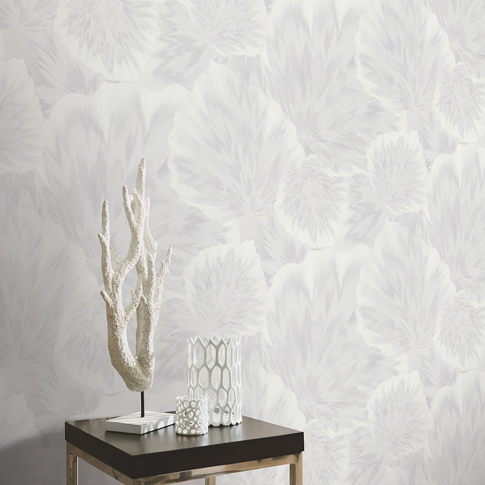 This elegant wallpaper from Erismann from the Spotlight 2 collection is like haute couture for your walls. Every room becomes a center of glitz and glamor, filling your everyday life with the splendor and excitement of a gala night. The non-woven wallpaper 10402-01 shows a pattern with abstract leaves that look as if they were marbled in white and cream tones with a metallic effect. Also discover the other luxurious wallpapers in this collection in our shop.