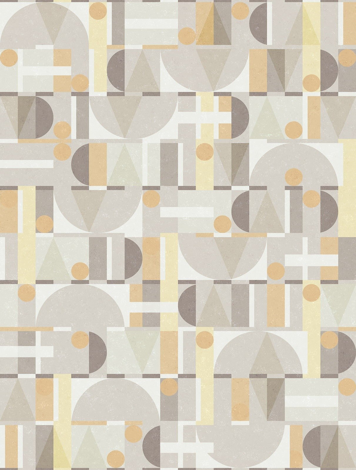 This wallpaper from the Leyla collection by Novamur combines urban chic and Mediterranean lightness and conjures up works of art on your walls. With the wallpaper you can easily bring the lifestyle of Santorini or Miami straight into your home. The non-woven wallpaper 81646 shows a graphic pattern with different shapes such as circles and triangles in a concrete look in cream, grey and yellow tones. Also discover the other wallpapers in this collection in our shop.