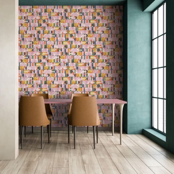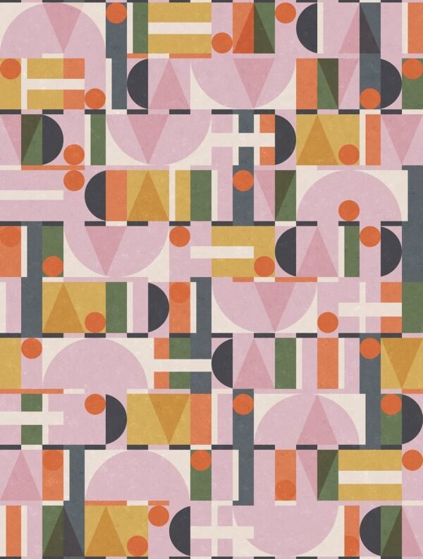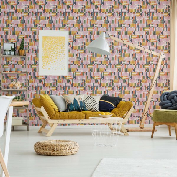 This wallpaper from the Leyla collection by Novamur combines urban chic and Mediterranean lightness and conjures up works of art on your walls. With the wallpaper you can easily bring the lifestyle of Santorini or Miami straight into your home. The non-woven wallpaper 81645 shows a graphic pattern with various shapes such as circles and triangles in a concrete look in shades of pink, yellow and green. Also discover the other wallpapers in this collection in our shop.