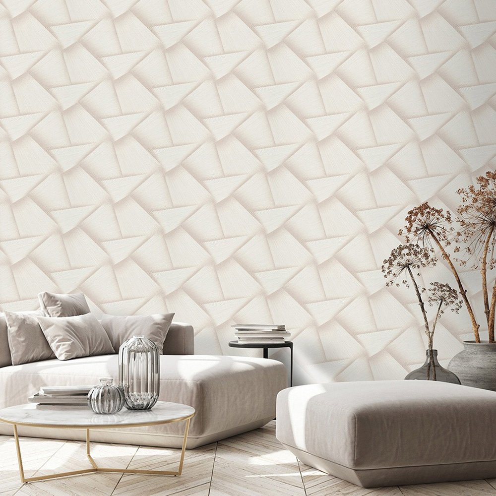 This elegant wallpaper from Erismann from the Spotlight 2 collection is like haute couture for your walls. Every room becomes a center of glitz and glamor, filling your everyday life with the splendor and excitement of a gala night. The non-woven wallpaper 10401-14 shows a graphic motif that is reminiscent of a complex braid with texture and 3D effect in cream and beige tones with a metallic effect. Also discover the other luxurious wallpapers in this collection in our shop.