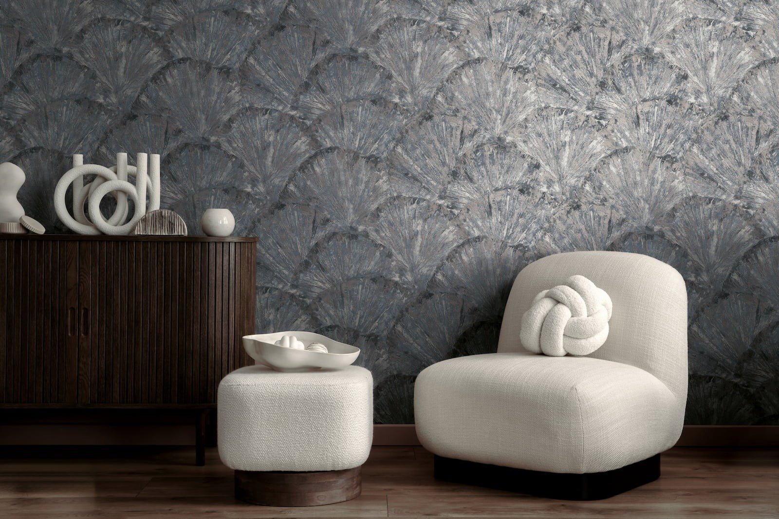 Non-woven wallpaper graphic fans dark blue grey 78198-5