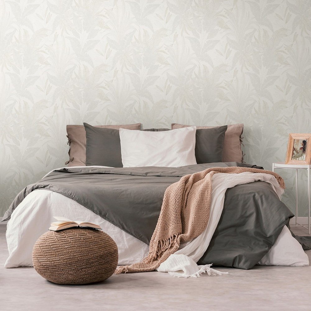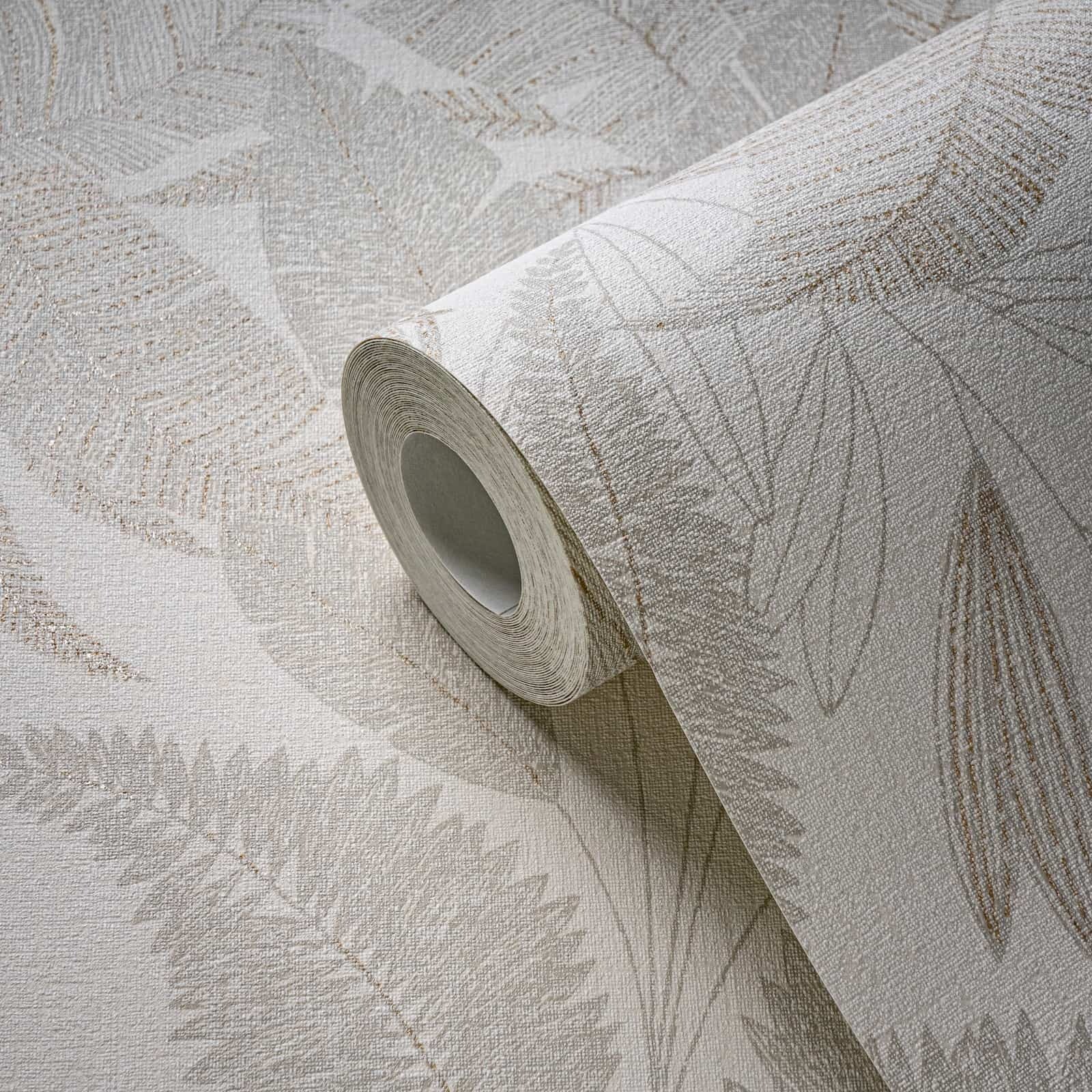 This wallpaper from the Stories of Life collection by livingwalls gives your four walls a stylish and modern ambience. The wallpaper is perfect for creative wall design if you want to give your rooms an individual touch. The non-woven wallpaper 39654-2 shows a pattern with tropical leaves in a textile look in cream tones with a metallic effect in gold. Also discover the other wallpapers in this collection in our shop.