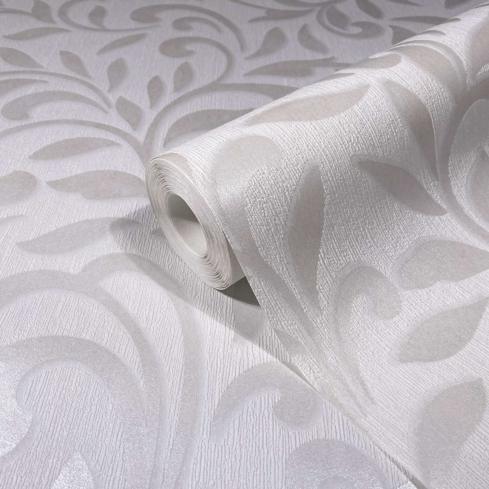 Bring a breath of fresh air into your home with this non-woven wallpaper from the Jackie collection by Novamur. Inspired by the metropolises of Bahia, Riga, Lisbon and New York, the designs in the collection pick up on a wide variety of trends. The wallpaper 82383 has a pattern consisting of floral leaf tendrils with a metallic effect in pearl on a plain background with a grooved texture in cream tones. Discover the entire Novamur wallpaper collection in our shop now.