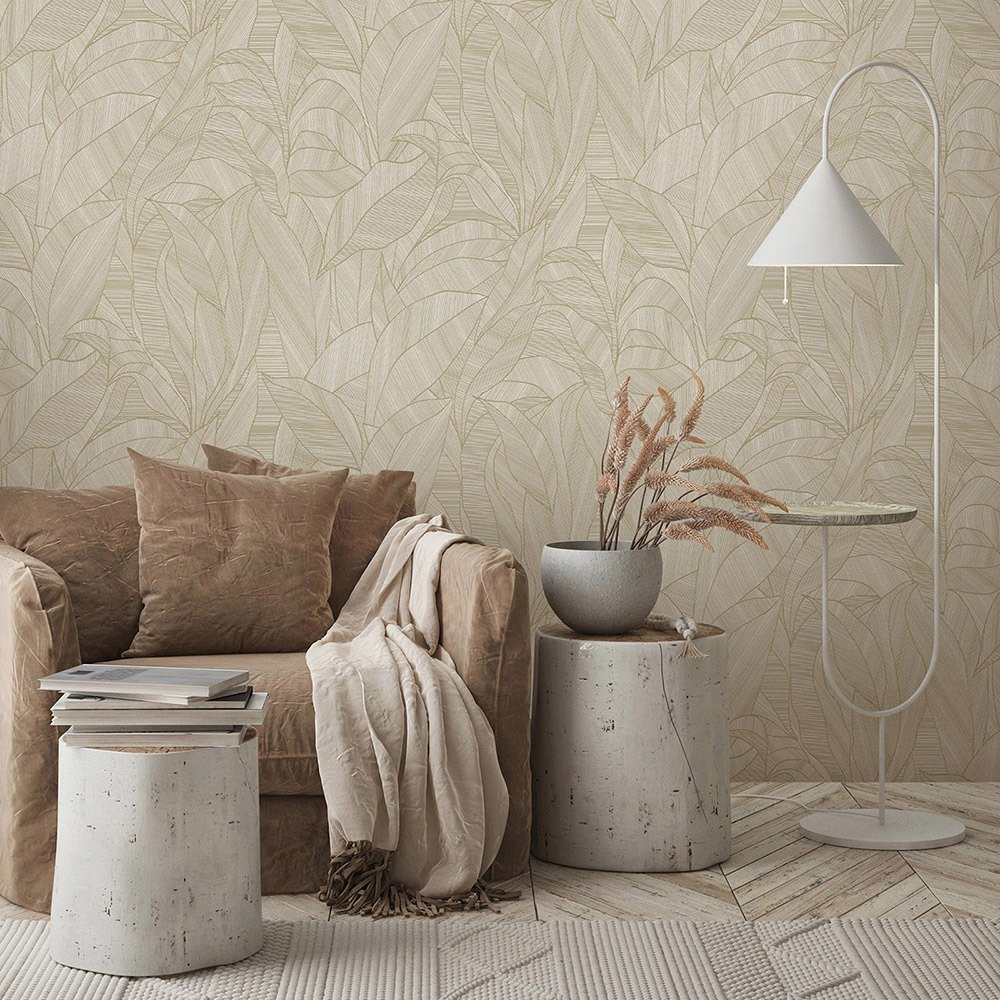 With this wallpaper from the Cameo collection by Erismann, you can give your home a clean, timeless elegance with an inviting atmosphere. It is characterized by a combination of understated colours and a subtle, textured design. The non-woven wallpaper 10530-11 features a leaf pattern with a linear texture in brown and cream tones. Discover the other wallpapers from this collection in our shop.