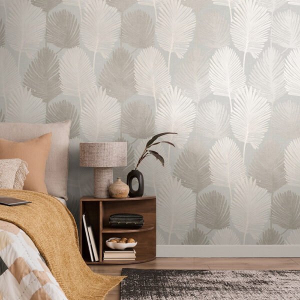 You can easily bring the urban flair of pulsating metropolises into your home with this wallpaper from the Metropolitan Stories – Hot Spots collection. It exudes a touch of magic that creates a new world in your home and makes you think of vacation. The non-woven wallpaper 78673-2 shows a tropical leaf pattern in a textile look with a subtle texture in grey and cream tones with a subtle glossy effect. Also discover the other wallpapers in this collection in our shop.