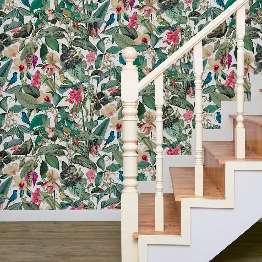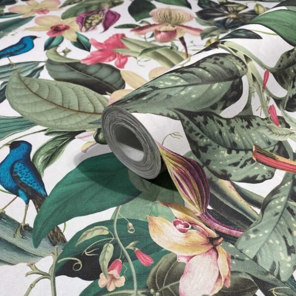 With this wallpaper from the Leyla collection by Novamur, you can easily add elegant accents to your home. The wallpaper combines high-quality materials with a modern and stylish character to give your rooms a harmonious atmosphere. The non-woven wallpaper 81686 features a tropical motif with various flowers and leaves in shades of white, green, and pink. Discover the other wallpapers from this collection in our shop.