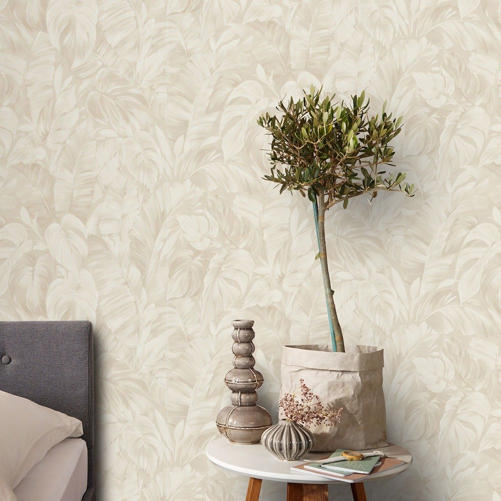 This beautiful wallpaper from the Play of Light collection by Erismann transforms any room into a place to feel good. It takes you into a magical world and elegantly gives your home a modern aesthetic that will delight you again and again. The non-woven wallpaper 10416-02 shows a tropical motif with lush leaves in beige and cream tones. Also discover the other wallpapers from the Play of Light collection in our shop..
