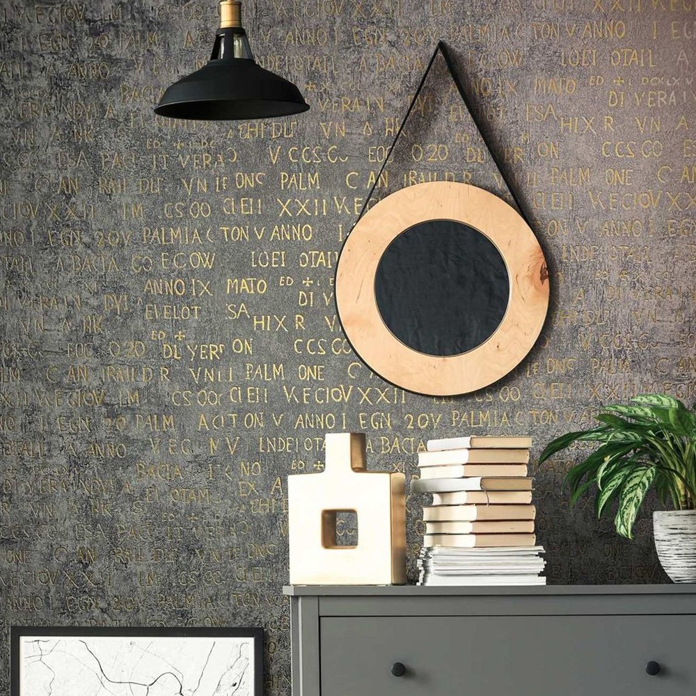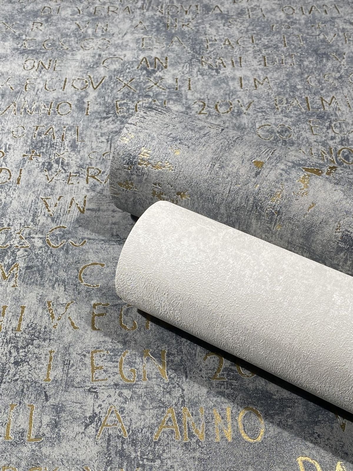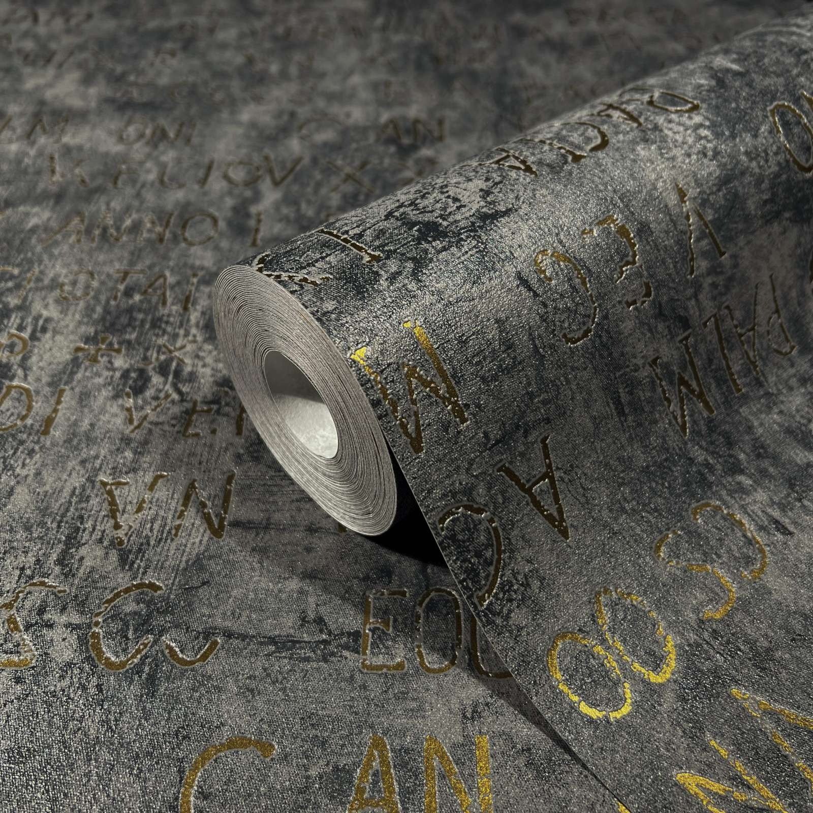 Bring a breath of fresh air into your home with this non-woven wallpaper from the Jackie collection by Novamur. Inspired by the metropolises of Bahia, Riga, Lisbon and New York, the designs in the collection pick up on a wide variety of trends. Wallpaper 82368 has a motif of antique metallic letters and numbers in gold on a distressed concrete effect background in tones of grey. Discover the entire Novamur wallpaper collection in our shop now.