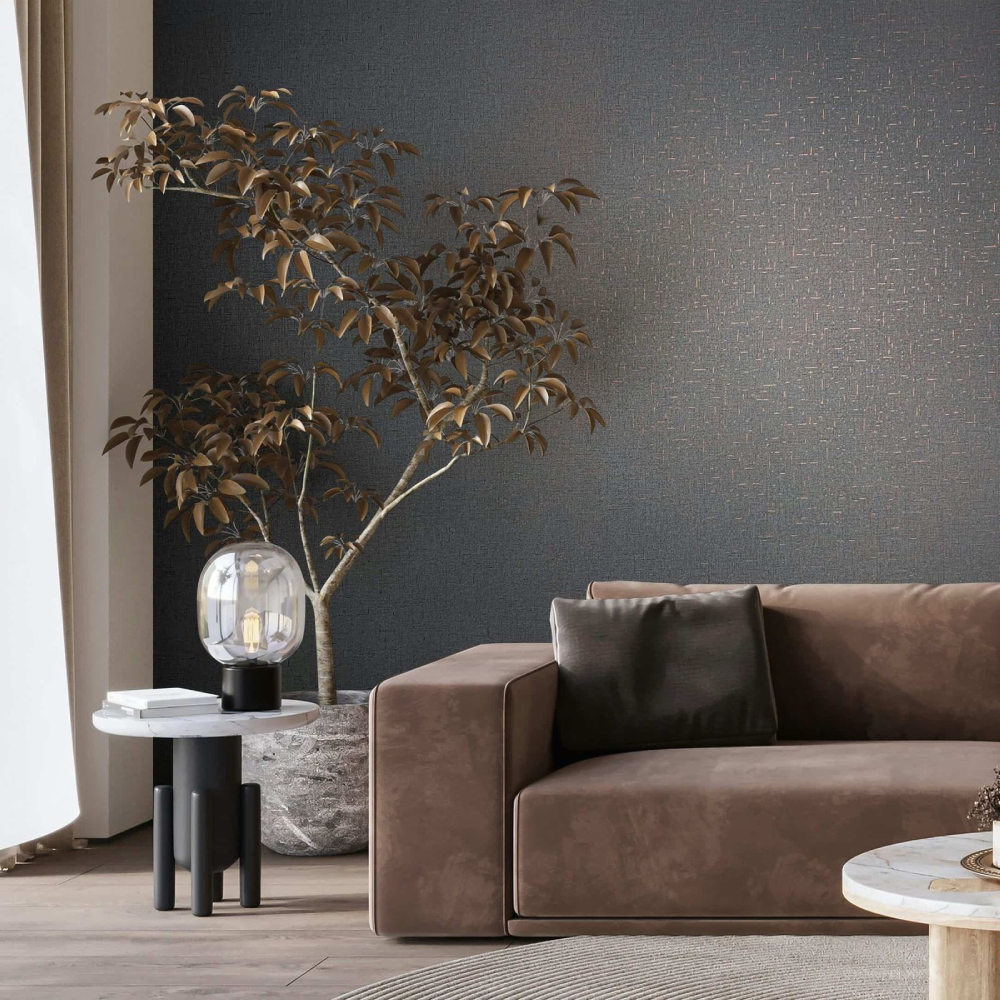 Immerse yourself in a world full of splendor and atmosphere of bygone times. With this wallpaper from Marburg from the City Romanca collection, you can bring the elegance and romance of historical palaces into your home. The non-woven wallpaper. 35111 has a mottled textile look, reminiscent of linen, with a subtle texture in grey tones with a metallic effect in copper. Also discover the other wallpapers in this collection in our shop.