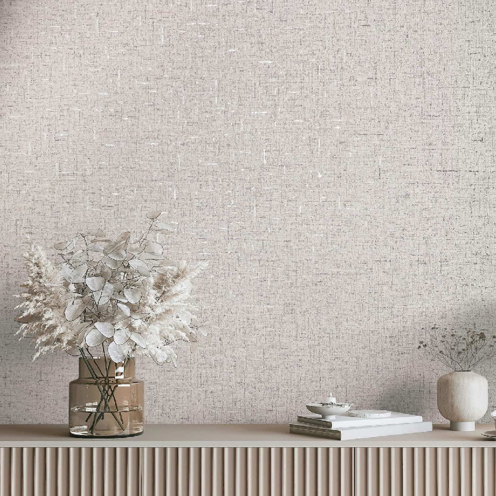 Immerse yourself in a world full of splendor and atmosphere of bygone times. With this wallpaper from Marburg from the City Romanca collection, you can bring the elegance and romance of historical palaces into your home. The non-woven wallpaper. 35113 has a mottled textile look, reminiscent of linen, with a subtle texture in beige tones with a metallic effect in rose gold. Also discover the other wallpapers in this collection in our shop.