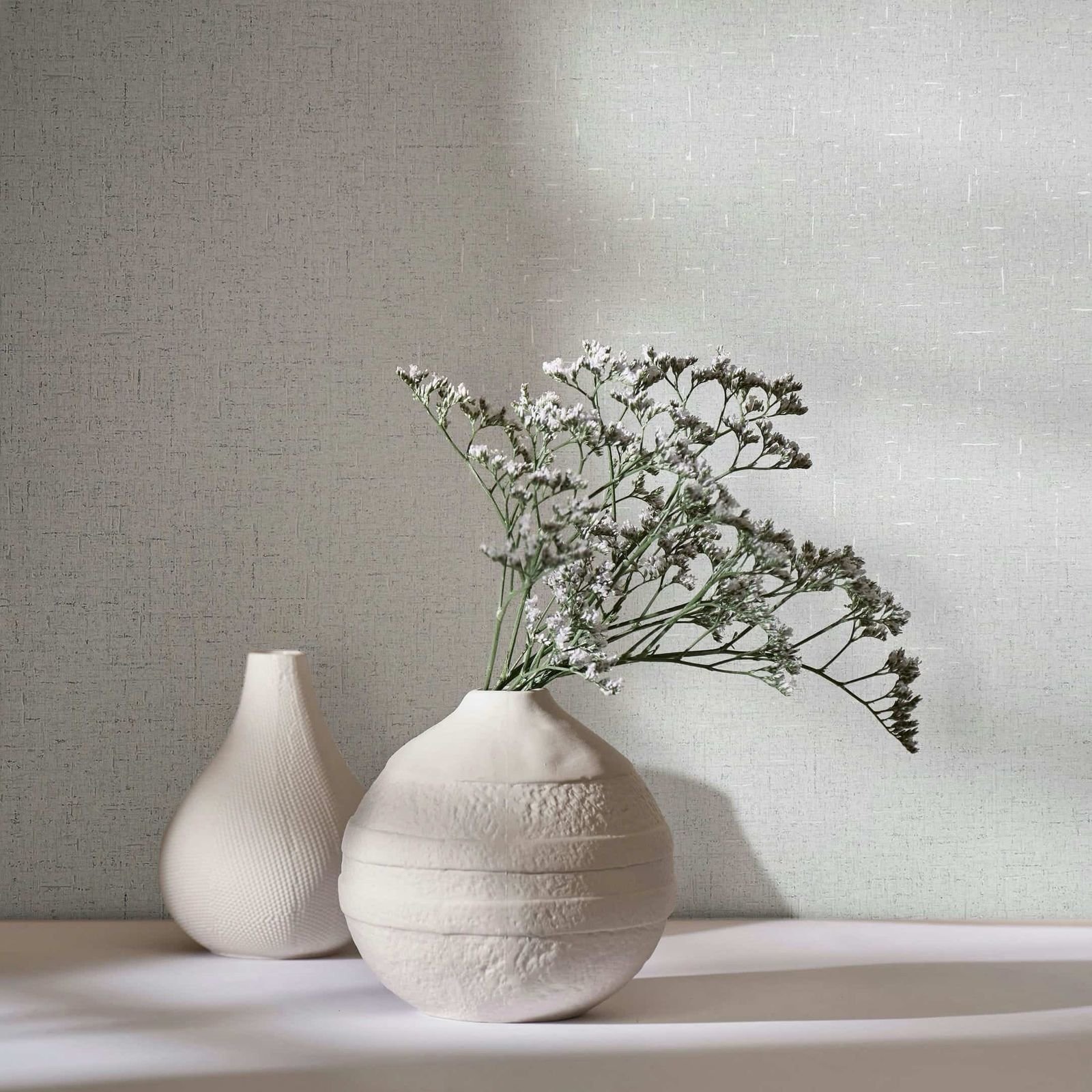 Immerse yourself in a world full of splendor and atmosphere of bygone times. With this wallpaper from Marburg from the City Romanca collection, you can bring the elegance and romance of historical palaces into your home. The non-woven wallpaper. 35109 has a mottled textile look, reminiscent of linen, with a subtle texture in beige tones with a metallic effect in silver. Also discover the other wallpapers in this collection in our shop.