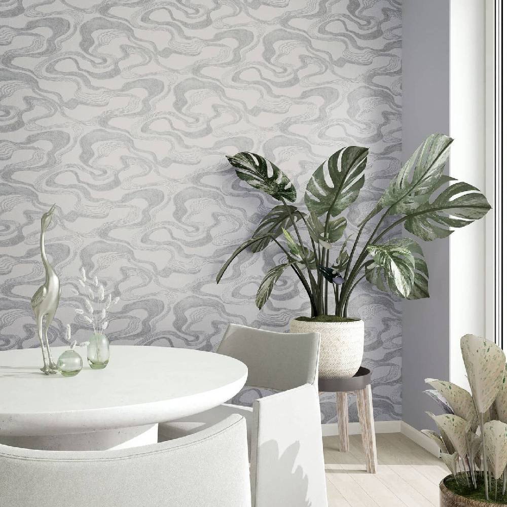 You can bring Nordic cosiness and Japanese clarity into your home with this non-woven wallpaper from the Kumano collection by Marburg. The wallpaper is in the trendy Japandi style, which combines the Japanese and Nordic styles and thus creates a pleasant atmosphere. Wallpaper 34536 features abstract wavy lines on a fabric-look background in shades of grey with a metallic effect. Convince yourself of the other wallpapers in this collection in our shop.