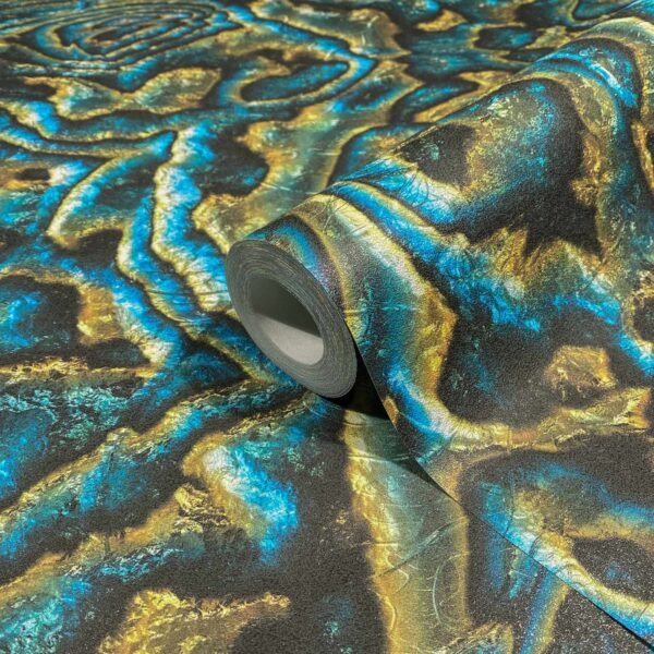 With this wallpaper from the Leyla collection by Novamur, you can easily add elegant accents to your home. The wallpaper combines high-quality materials with a modern and stylish character to give your rooms a harmonious atmosphere. The non-woven wallpaper 81693 features an abstract marble look in shades of blue and yellow. Discover the other wallpapers from this collection in our shop.