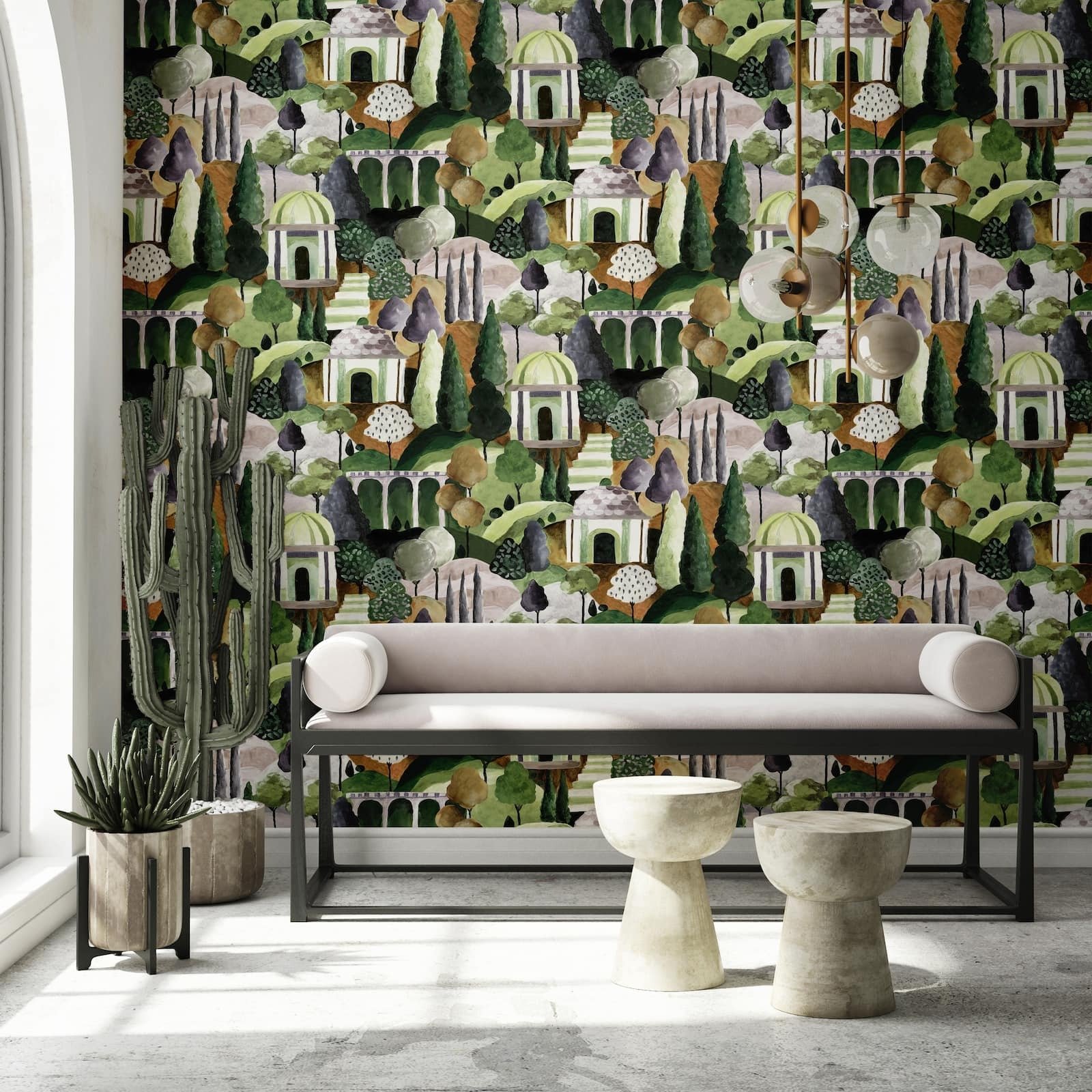 This wallpaper from the Leyla collection by Novamur combines urban chic and Mediterranean lightness and conjures up works of art on your walls. With the wallpaper you can easily bring the lifestyle of Santorini or Miami straight into your home. The non-woven wallpaper 81663 shows a motif with a Mediterranean garden that looks like a painting in green, grey and brown tones. Also discover the other wallpapers in this collection in our shop.