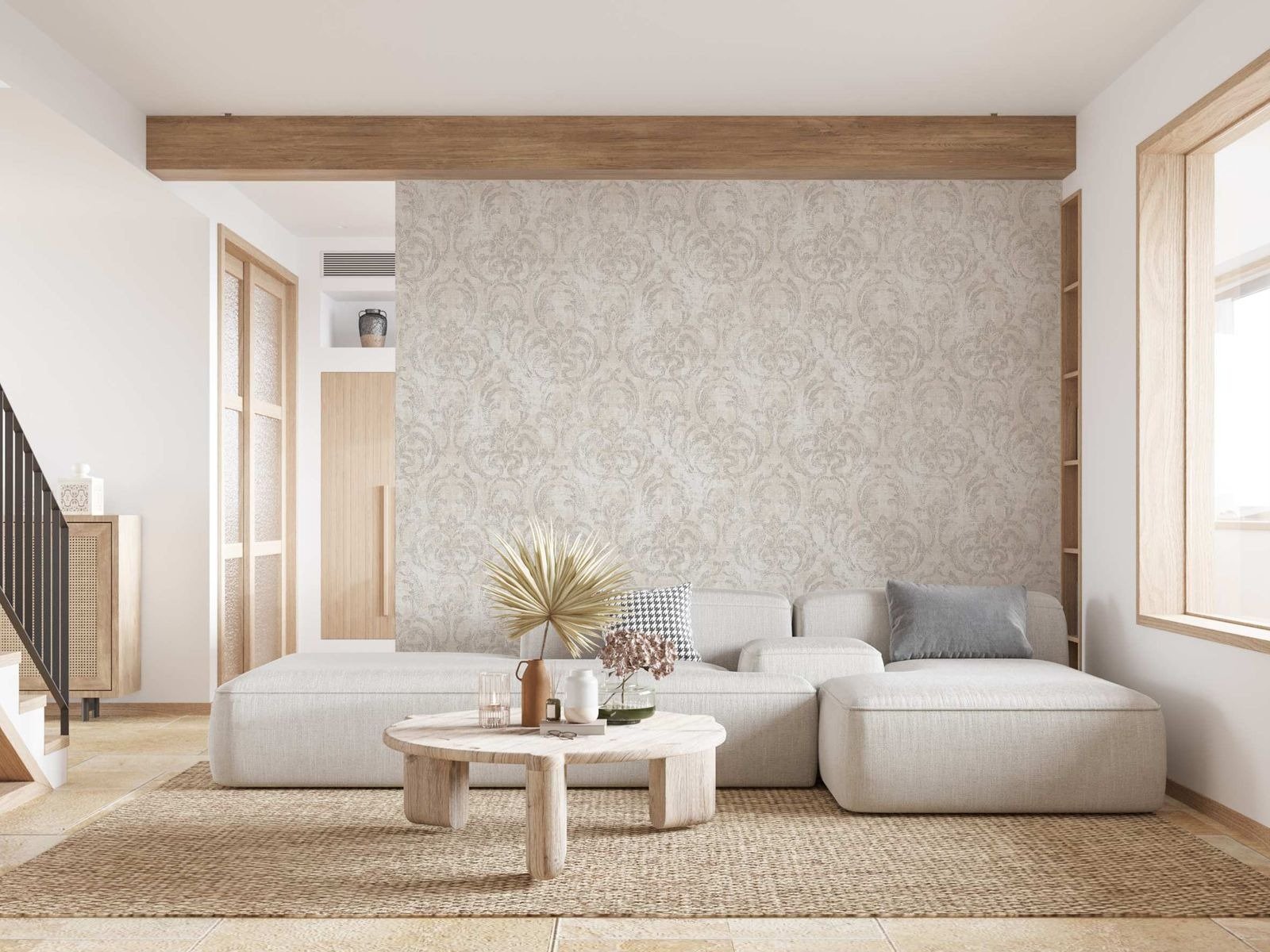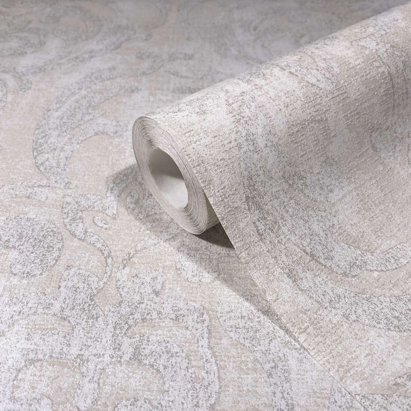 Bring a breath of fresh air into your home with this non-woven wallpaper from the Jackie collection by Novamur. Inspired by the metropolises of Bahia, Riga, Lisbon and New York, the designs in the collection pick up on a wide variety of trends. Wallpaper 82388 has a floral ornamental pattern in shades of grey on a distressed plaster background in shades of beige and white. Discover the entire Novamur wallpaper collection in our shop now.