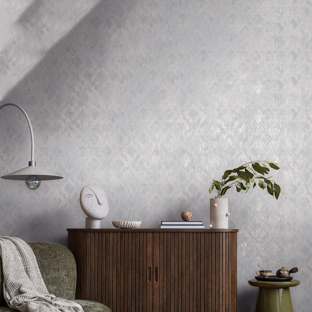 You can easily bring the urban flair of pulsating metropolises into your home with this wallpaper from the Metropolitan Stories – Hot Spots collection fetch. It exudes a touch of magic that creates a new world in your home and makes you think of vacation. The non-woven wallpaper 78672-1 shows a motif with ornaments in a used look in grey tones with a subtle metallic effect in silver. Also discover the other wallpapers in this collection in our shop.