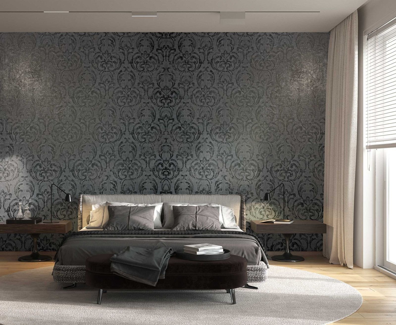 Bring a breath of fresh air into your home with this non-woven wallpaper from the Jackie collection by Novamur. Inspired by the metropolises of Bahia, Riga, Lisbon and New York, the designs in the collection pick up on a wide variety of trends. The wallpaper 82391 has a floral ornament pattern in black on a used-look plaster effect background in grey tones. Discover the entire Novamur wallpaper collection in our shop now.