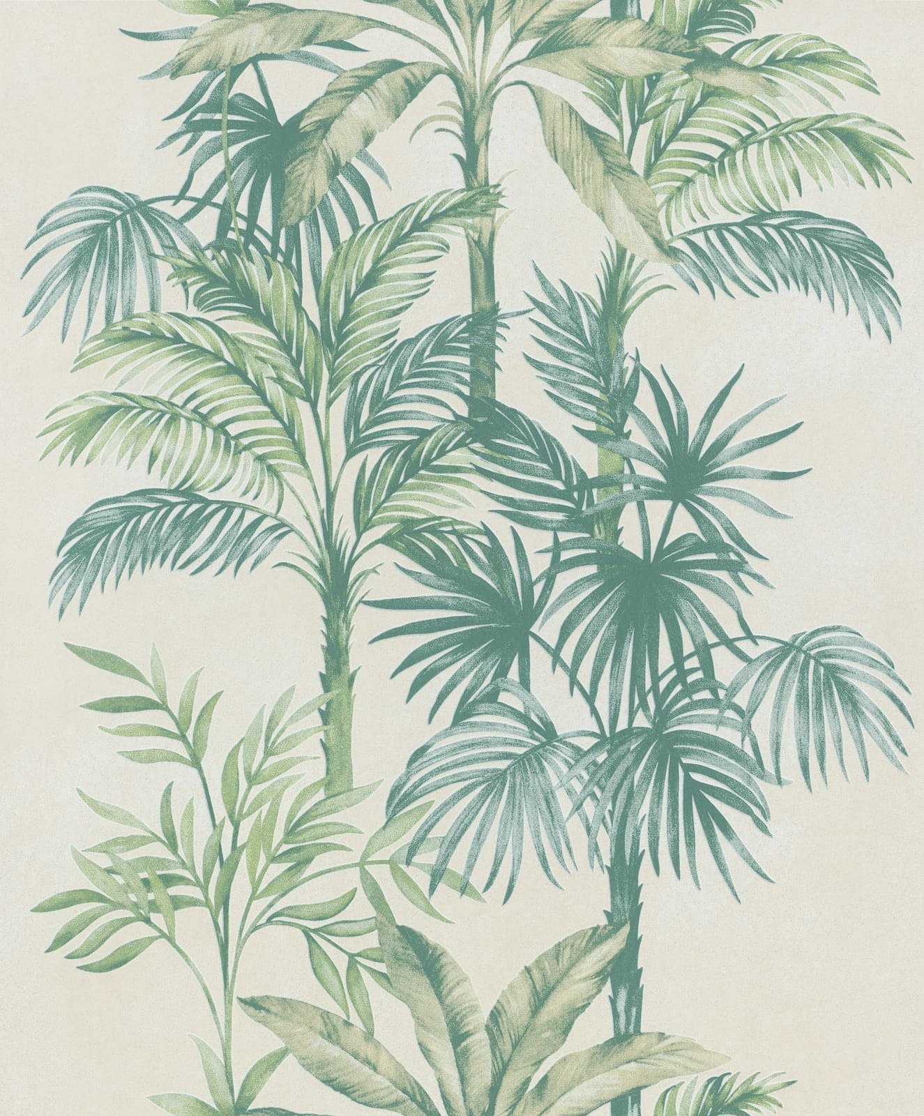 This wallpaper from the Leyla collection by Novamur combines urban chic and Mediterranean lightness and conjures up works of art on your walls. With the wallpaper you can easily bring the lifestyle of Santorini or Miami straight into your home. The non-woven wallpaper 82456 shows a jungle motif with palm trees in beige and green tones. Also discover the other wallpapers in this collection in our shop.