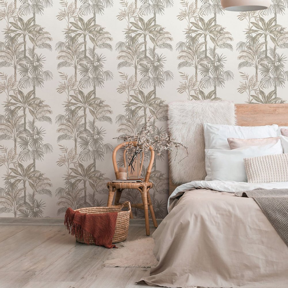 This wallpaper from the Leyla collection by Novamur combines urban chic and Mediterranean lightness and conjures up works of art on your walls. With the wallpaper you can easily bring the lifestyle of Santorini or Miami straight into your home. The non-woven wallpaper 82454 shows a jungle motif with palm trees in cream and brown tones. Also discover the other wallpapers in this collection in our shop.