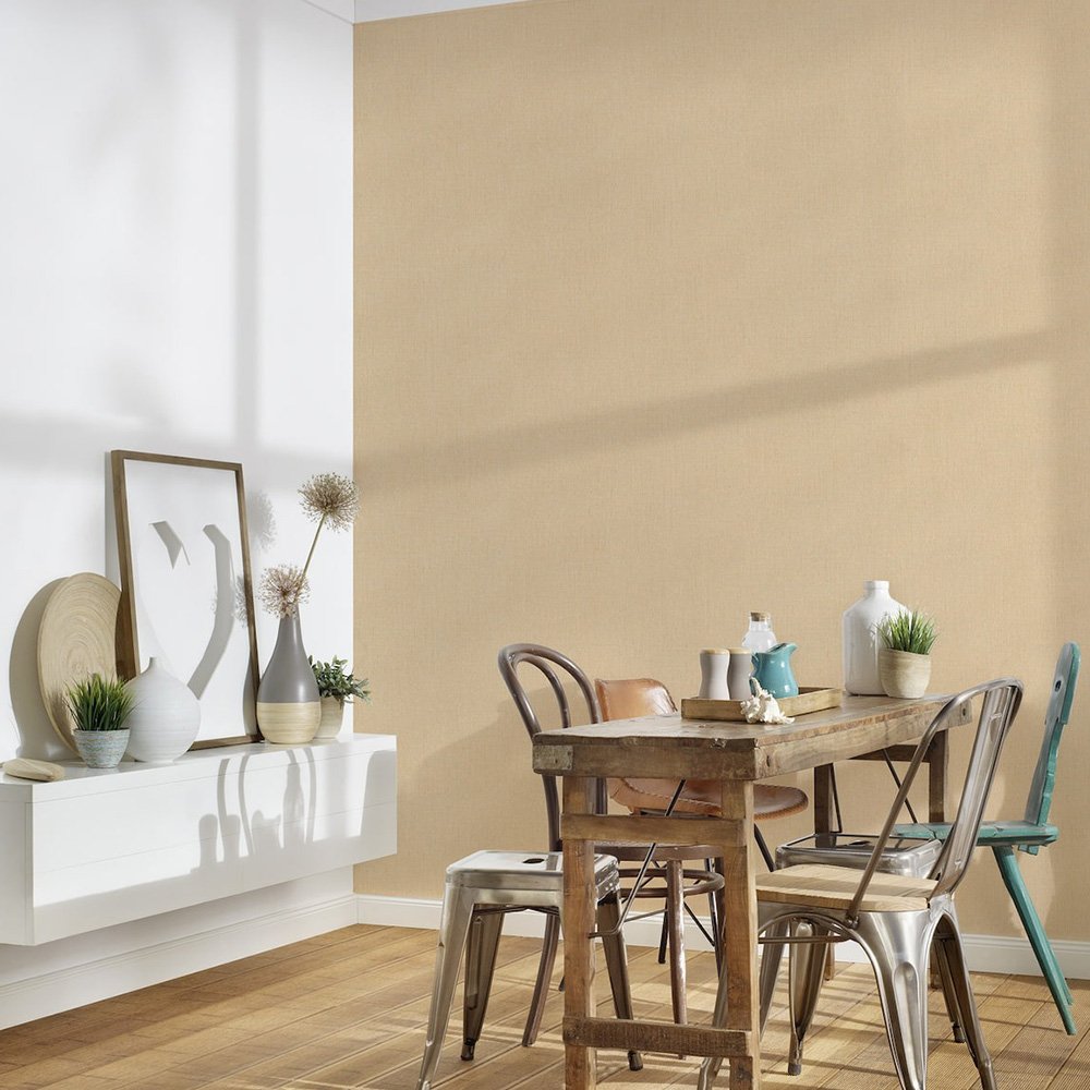 This wallpaper from the Stories of Life collection by livingwalls gives your four walls a stylish and modern ambience. The wallpaper is perfect for creative wall design if you want to give your rooms an individual touch. The non-woven wallpaper 39651-8 is plain mottled in a modern linen look in beige tones. Also discover the other wallpapers in this collection in our shop.