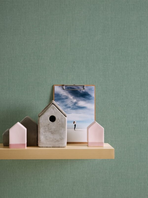 Non-woven wallpaper plain linen look green blue 39651-9